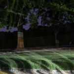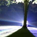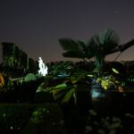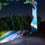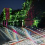 Ab 21:30 Uhr inszenieren verschiedene Scheinwerfer den großen Garten. Stativ und Kamera eingepackt wurden so einige Eindrücke der Lichtinstallation der Künstlerin Victoria Coeln eingefangen.